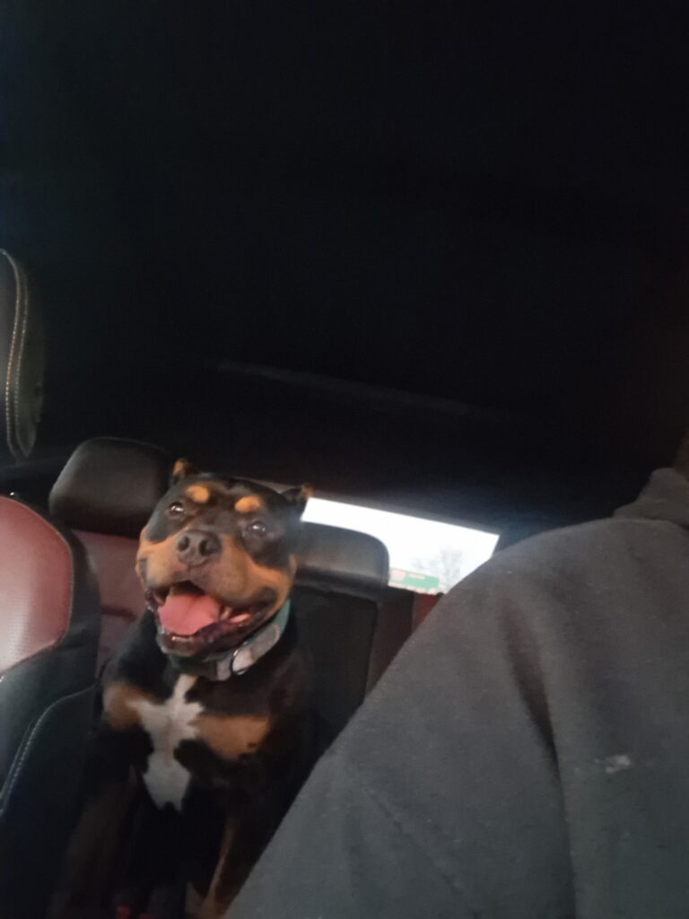 Bruno: 4-year-old American Bully. Kid-friendly and does well with other female dogs, but gets irritated quickly with other male dogs. Bruno is available for foster care or adoption!